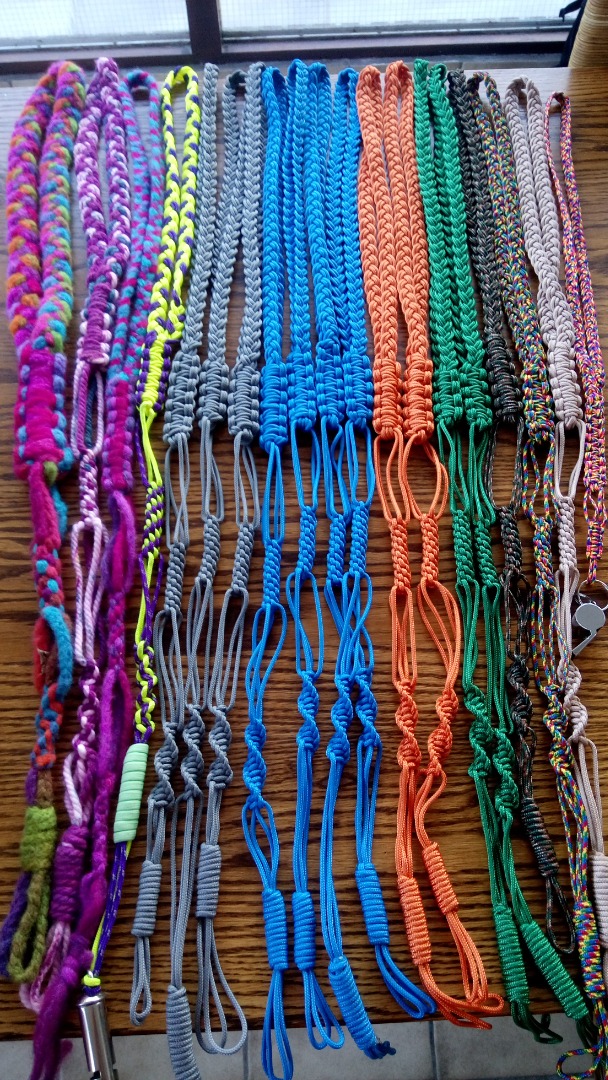 (De geel-paarse is mijn eigen fluitkoord welke ik wekelijks gebruik bij de scouting.)